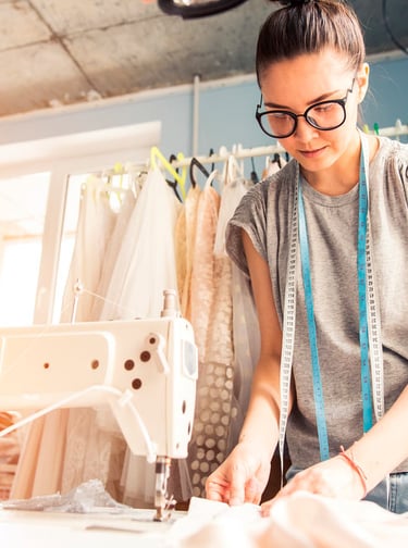 Con la emoción de haber confirmado tu vestido, nuestro taller artesanal comienza a trabajar en tu sueño. Este mes está dedicado a la creación: trazamos el patrón exclusivo de tu diseño y seleccionamos personalmente las telas más finas para tu gran día.